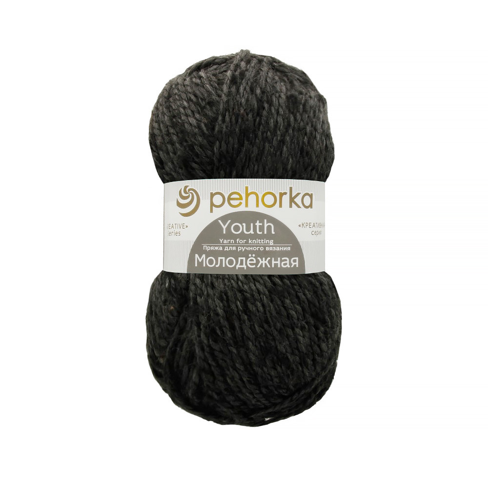 Пряжа Пехорская ПТ " Молодежная" 91% акрил, 9% полиамид 200 г 280 м №435 антрацит. Цена за упаковку 5 шт
