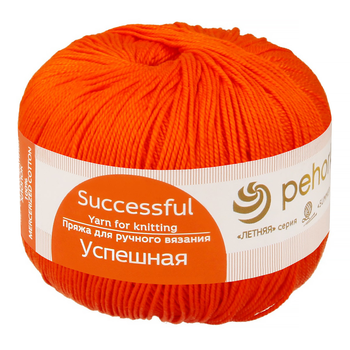 Пряжа Пехорская ПТ " Успешная" 100% мерсеризованный хлопок 50 г 220 м №284 оранжевый. Цена за упаковку 10 шт