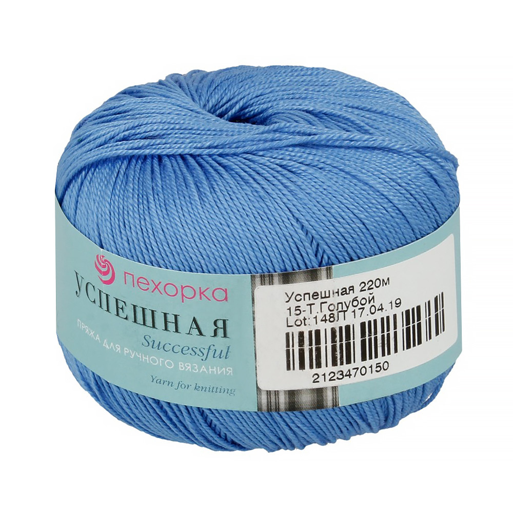 Пряжа Пехорская ПТ " Успешная" 100% мерсеризованный хлопок 50 г 220 м №005 голубой. Цена за упаковку 10 шт
