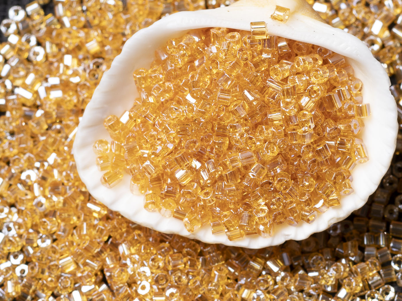 Бисер чешский PRECIOSA рубка 10/0 16050 янтарный прозрачный блестящий