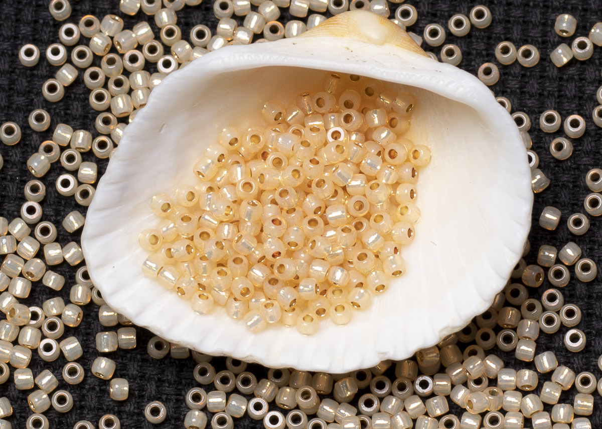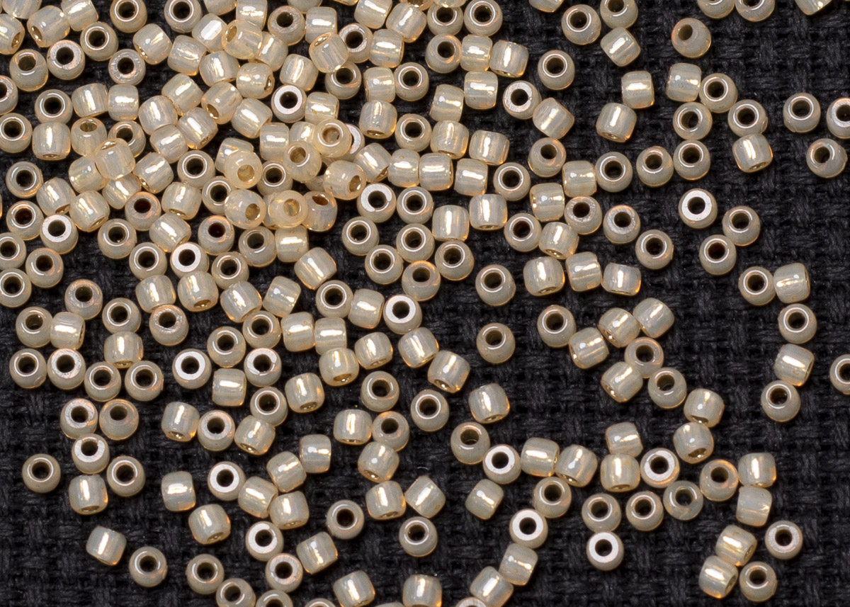 Бисер Япония круглый 11/0 10 г PF2110 молочный светлый топаз, серебряная линия внутри
