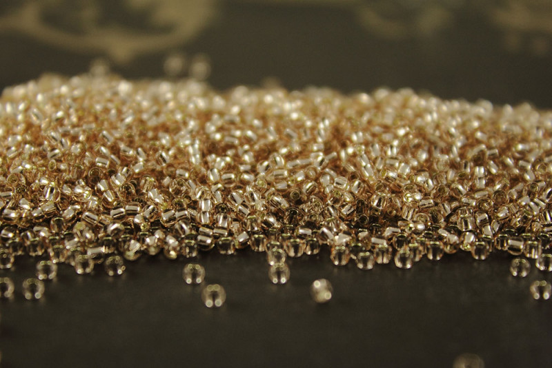 Бисер Япония круглый 11/0 250 г 0031 розалин, серебряная линия внутри
