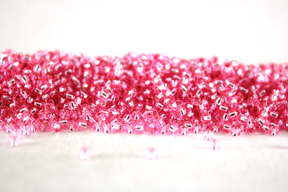 Бисер Япония круглый 11/0 250 г 0038 розовый, серебряная линия внутри