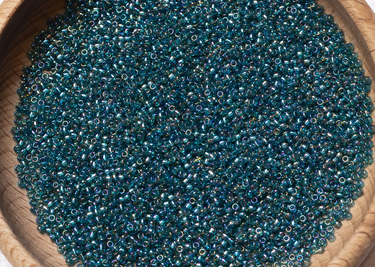 Бисер Япония круглый 11/0 250г 0167BD изумруд, радужный прозрачный