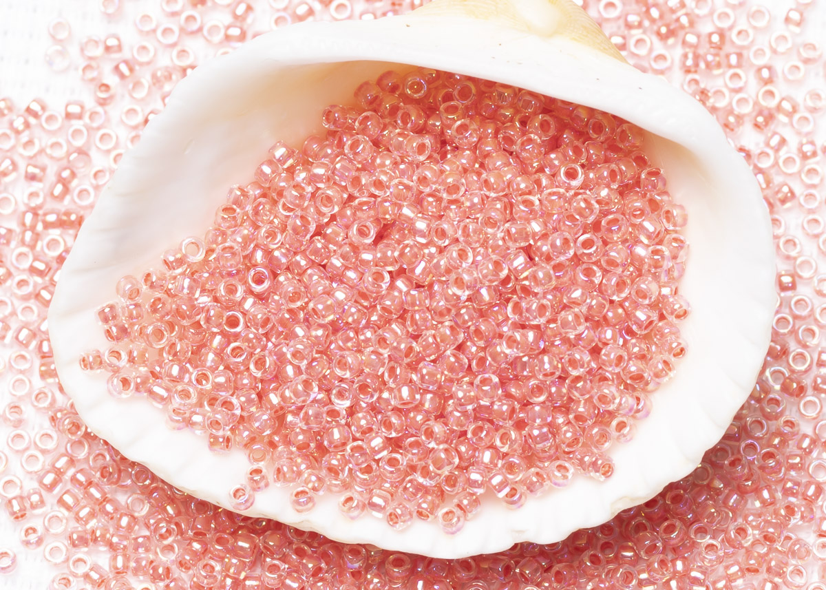Бисер Япония круглый 15/0 10 г 0779 хрусталь/лосось радужный, окрашенный изнутри
