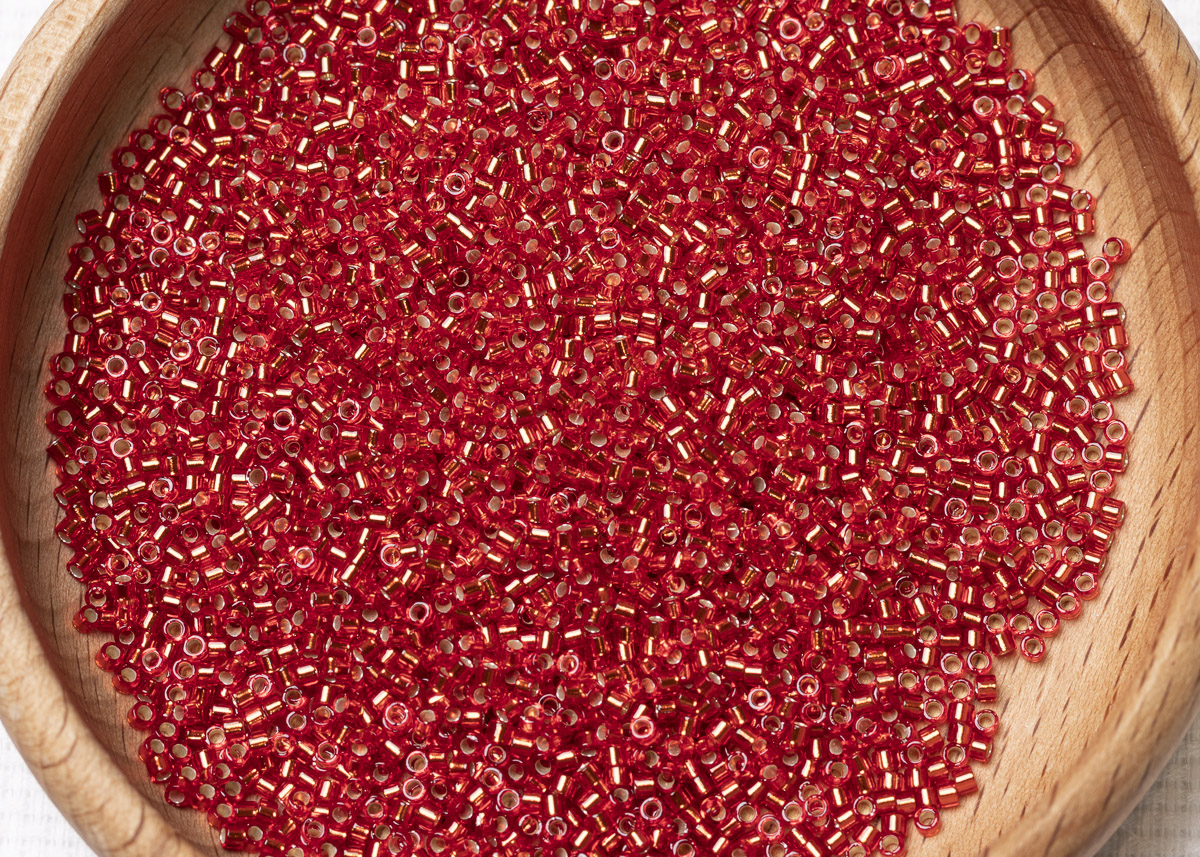 Бисер Япония MIYUKI Delica цилиндрический 11/0 50г DB-0043 красный серебряная линия внутри