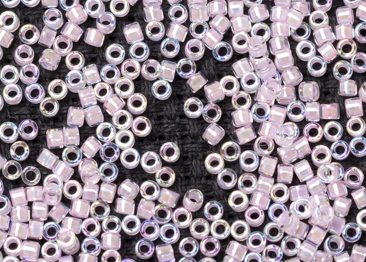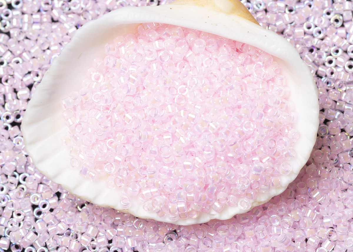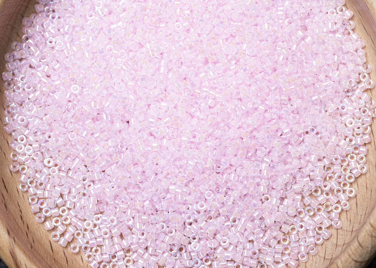 Бисер Япония MIYUKI Delica цилиндрический 11/0 50г DB-0055 бледно-розовый радужный с цветной линией