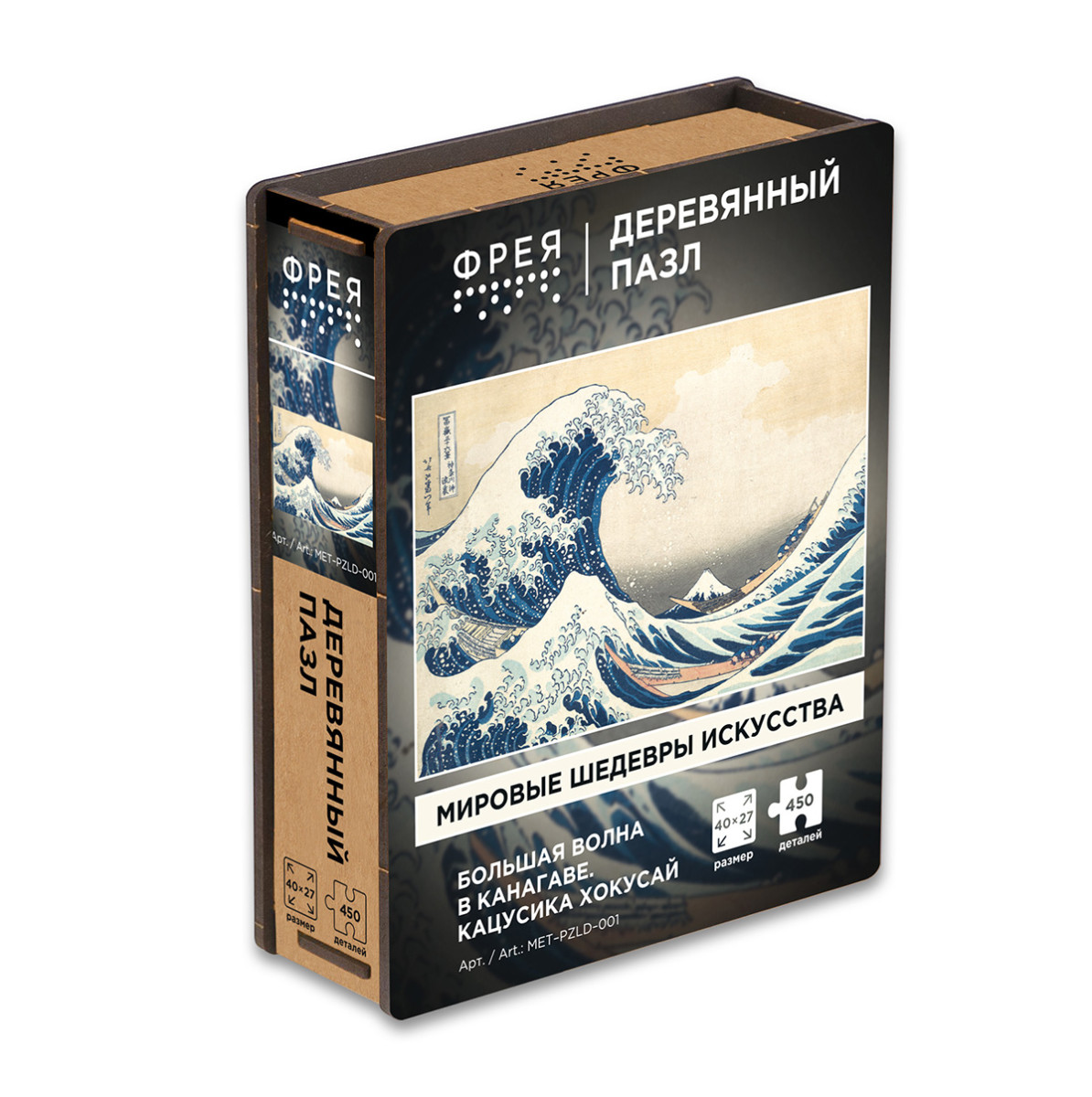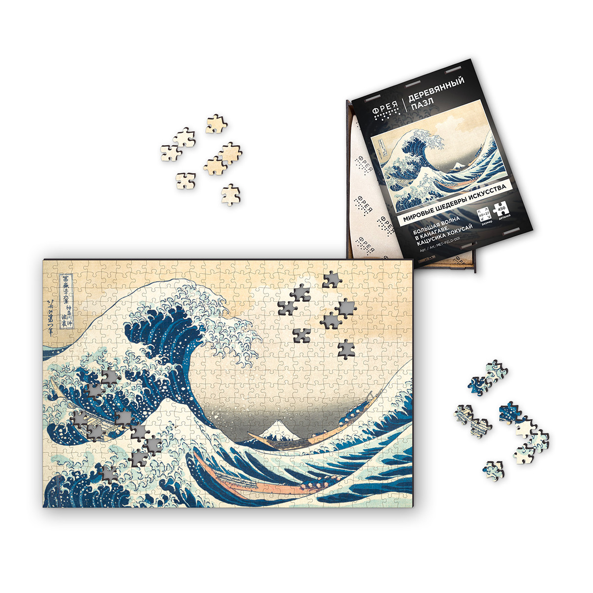 " ФРЕЯ" MET- PZLD- 001 Пазл деревянный " Большая волна в Канагаве, Кацусика Хокусай." 450 элемент. .