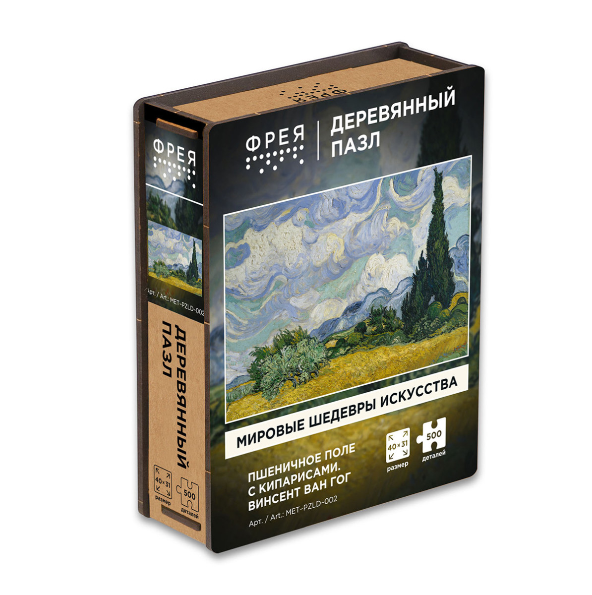 " ФРЕЯ" MET- PZLD- 002 Пазл деревянный " Пшеничное поле с кипарисами, Винсент ван Гог." 500 элемент.