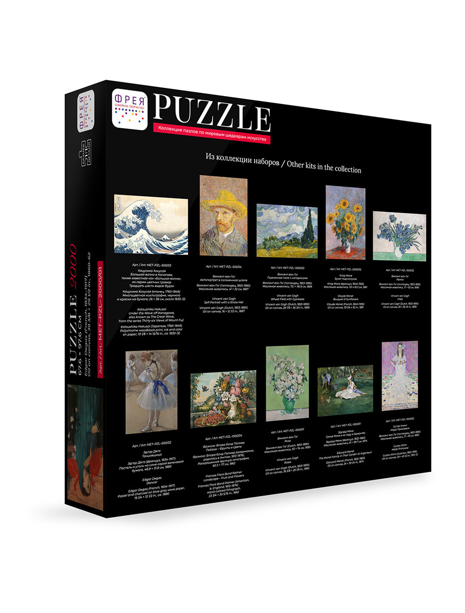 Пазлы ТМ Фрея серии " Мировые шедевры искусства" - это монументальные и всемирно известные картины в оригинальном формате игрового набора! Фрагмент за фрагментом вы повторите сюжет уникального шедевра изобразительного искусства и сможете изучить его в мельчайших деталях. Готовый пазл с таким сюжетом может стать интересным и необычным украшением интерьера. Также пазлы ТМ Фрея будут отличным подарком для ваших близких. Детали пазлов этой серии толще обычных. Для изготовления деталей мы используем цельнолитой картон. Такой картон не деформируется и не расслаивается даже при многократной сборке пазла. Допускаются вариации в размерах внутри одного артикула. Актуальная информация указана на упаковке товара. Сообщить о неточности в описании Подборки товаров