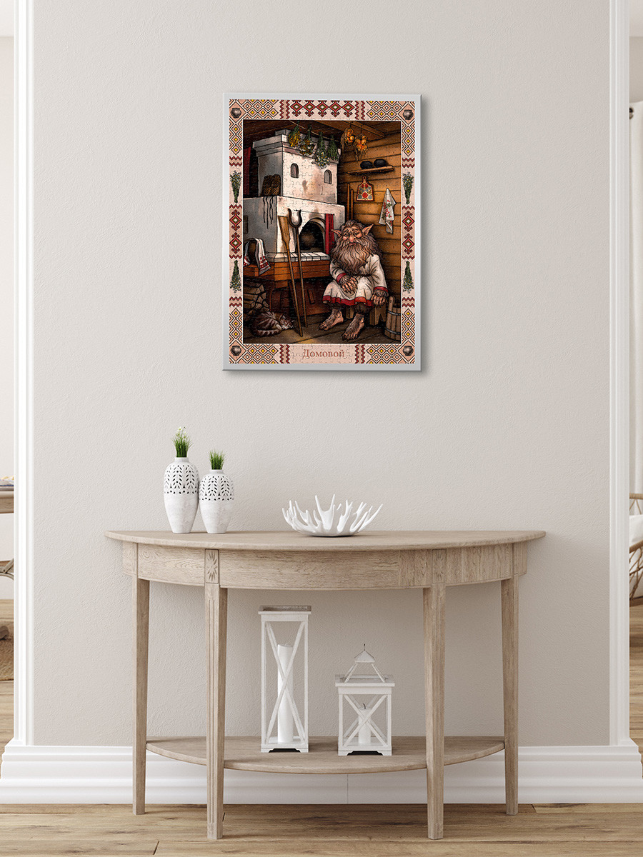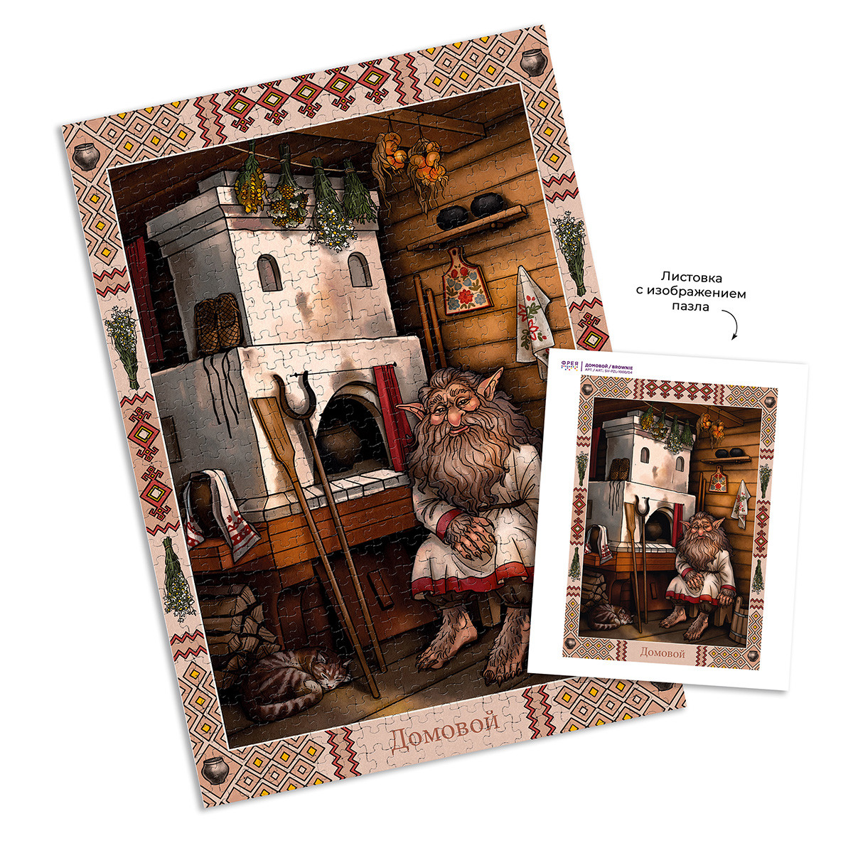Пазлы ТМ Фрея - это яркие, интересные, увлекательные дизайны. Специально для вас мы разработали уникальную серию картин " Славянская мифология". Готовый пазл с таким сюжетом может стать интересным и необычным украшением интерьера. Также пазлы ТМ Фрея будут отличным подарком для ваших близких. Детали пазлов этой серии толще обычных. Для изготовления деталей мы используем европейский картон премиум качества. Такой картон не деформируется и не расслаивается даже при многократной сборке пазла. Размер готовой работы может отличаться от указанной на сайте. Актуальная информация размещена на упаковке товара. Домового обычно представляли в облике хозяина дома или предка семьи, но с некоторыми зверинымичертами, такими как большие торчком стоящие уши, лохматость и косматость, шерсть по всему телуи длинные когти. Одет домовой в кафтан и рубаху, подпоясанную кушаком. Домовой может жить в красном углу, на печи, у порога, на голбце, на чердаке, в углу клети или в подполе. Место, выбранное домовым, нельзя занимать – это может привести к неприятностям. По одним поверьямдомовой в доме один, по другим – состав его семьи совпадает с составом семьи хозяина дома. Домовой охраняет благополучие в семье, сторожит хозяйство, поддерживает огонь в печи, убирает дом, сушит зерно, ходит за водой, ухаживает за скотом. Но рассерженный домовой проказничает: прячет вещи, шумит ночами в подполе или на чердаке, бьет посуду, стягивает со спящего одеяло, съедает оставленныепродукты, путает оставленную пряжу. При переезде обязательно приглашали домового из старого домав новое место: переносили горящие угли из старой печи в новую или вешали накануне в избе лапоть, а потомтащили всю дорогу в новый дом лапоть на веревочке, веря, что на нем едет домовой. Сообщить о неточности в описании Подборки товаров