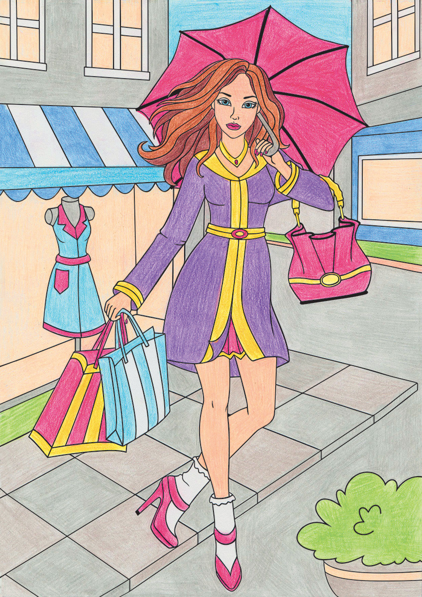 " ФРЕЯ" PNBK- 004 " Модный шоппинг" Набор для раскрашивания по номерам карандашами 29. 5 х 20. 5 см 1 л. .