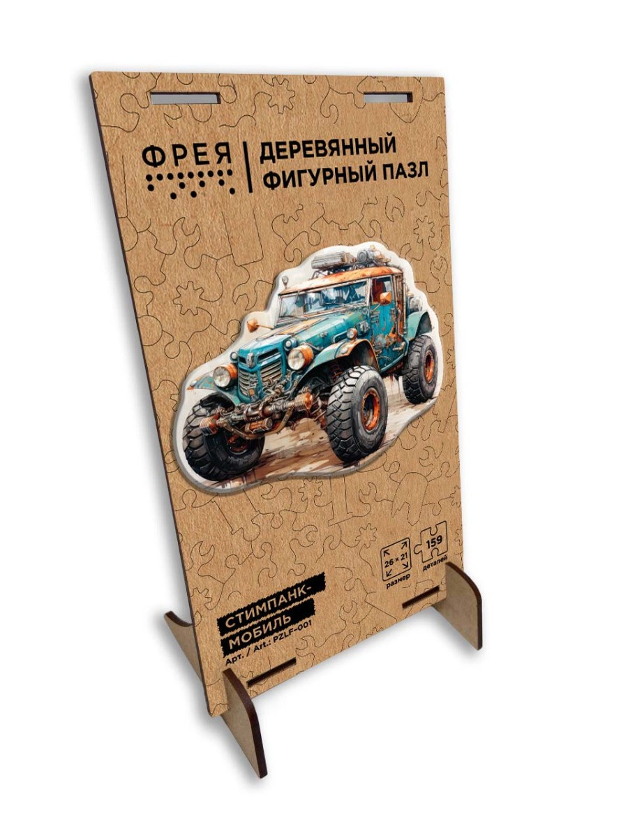 " ФРЕЯ" PZLF- 001 Пазл фигурный деревянный " Стимпанк- мобиль" 159 элемент. .
