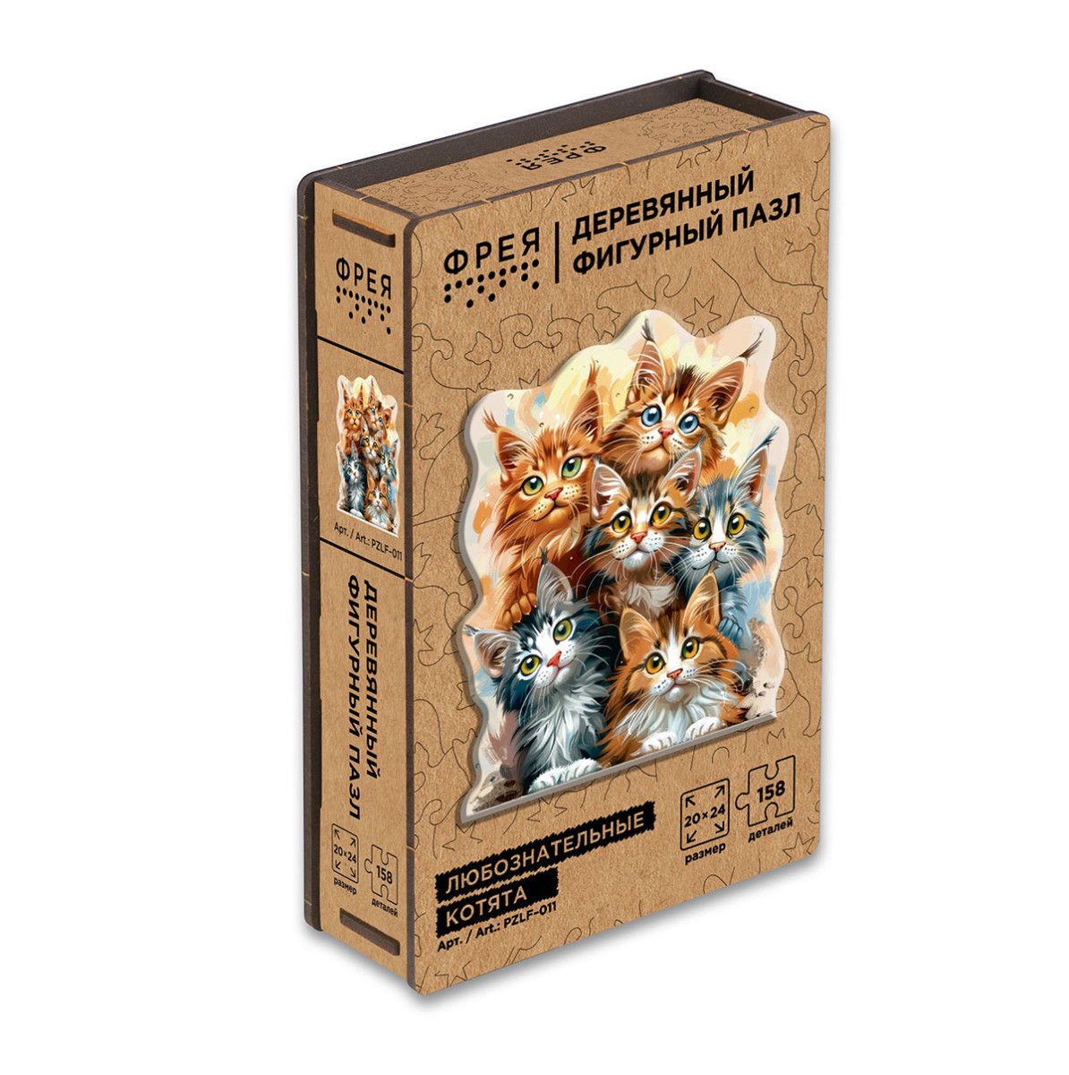 " ФРЕЯ" PZLF- 011 Пазл фигурный деревянный " Любознательные котята" 158 элемент.