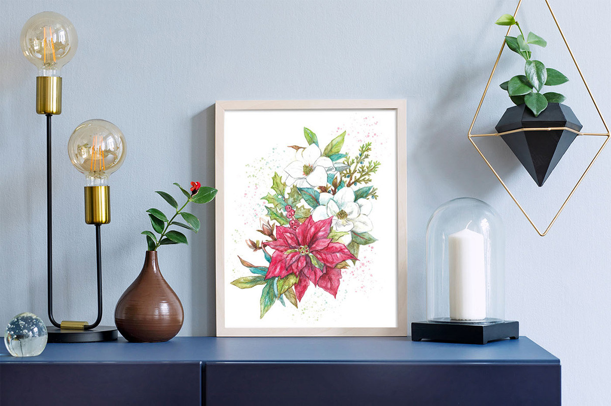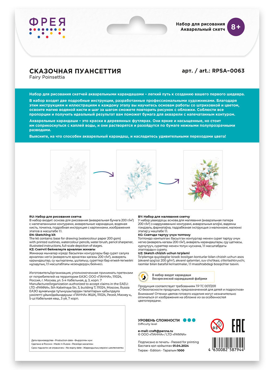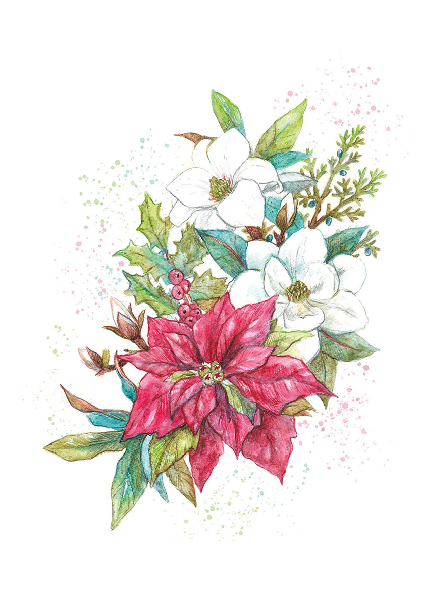 " ФРЕЯ" RPSA- 0063 " Сказочная пуансеттия" Скетч для раскраш. акварельными карандашами 29. 7 х 21 см 1 л. .