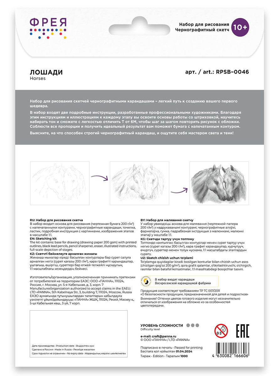 " ФРЕЯ" RPSB- 0046 " Лошади" Скетч для раскраш. чернографитными карандашами 29. 5 х 20. 5 см 1 л. .
