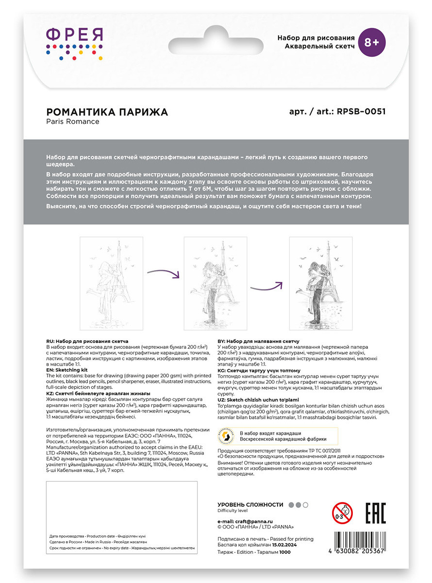 В набор входит: основа для рисования с напечатанными контурами, чернографитные карандаши, ластик, точилка, подробная инструкция с картинками, изображения этапов в масштабе 1: 1Размер упаковки: 238х330 мм. Набор для рисования скетчей чернографитными карандашами - лёгкий путь к созданию вашего первого шедевра. Благодаря двум подробным инструкциям, вы освоите основы работы со штриховкой, научитесь набирать тон и сможете с лёгкостью отличить Т от 6М, чтобы шаг за шагом повторить рисунок с обложки. Соблюсти все пропорции и получить идеальный результат вам поможет бумага с напечатанным контуром. Выясните, на что способен строгий чернографитный карандаш, и ощутите себя мастером света и тени! Сообщить о неточности в описании Подборки товаров