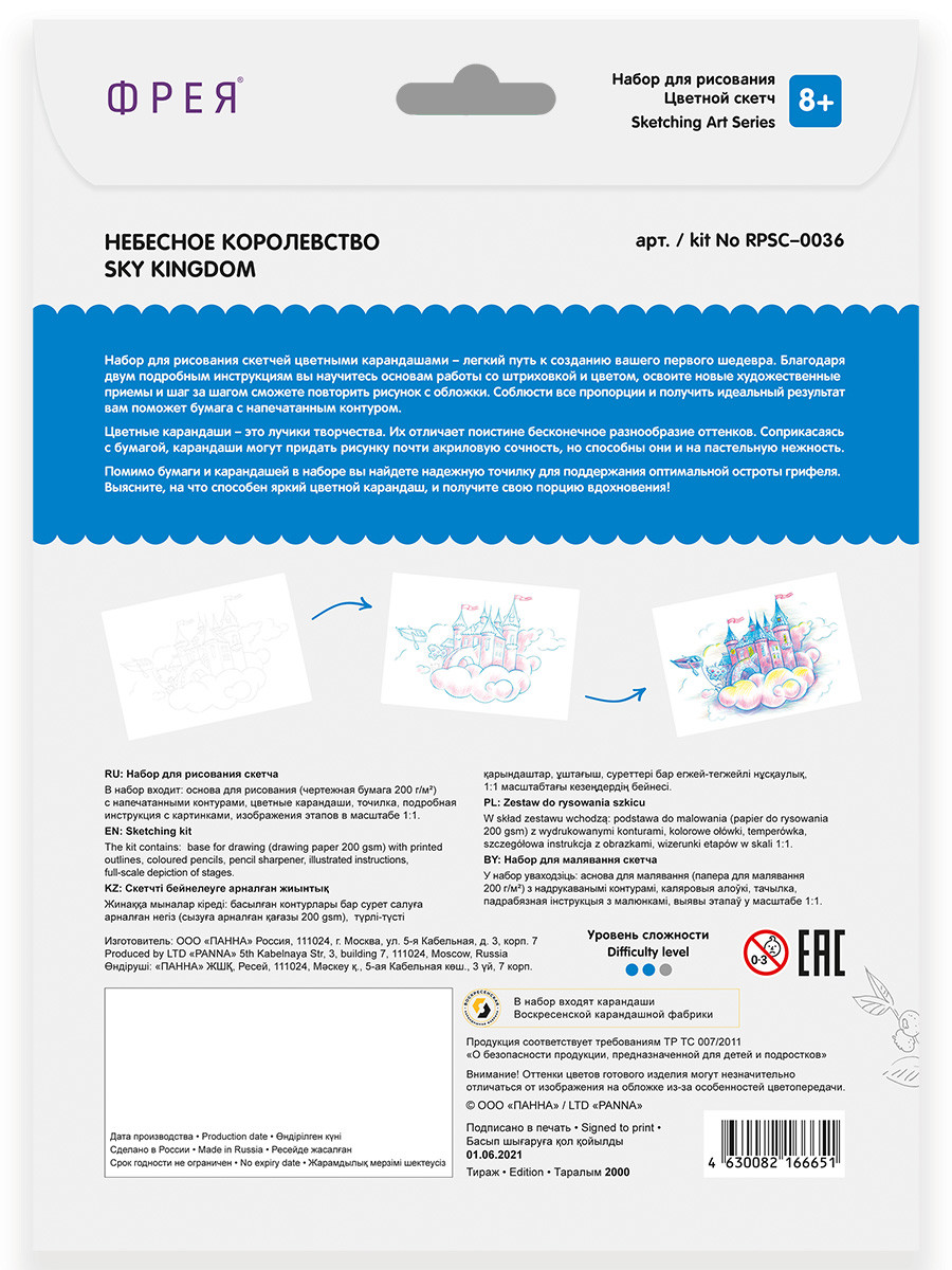 " ФРЕЯ" RPSC- 0036 " Небесное королевство" Скетч для раскраш. цветными карандашами 29. 5 х 20. 5 см 1 л. .