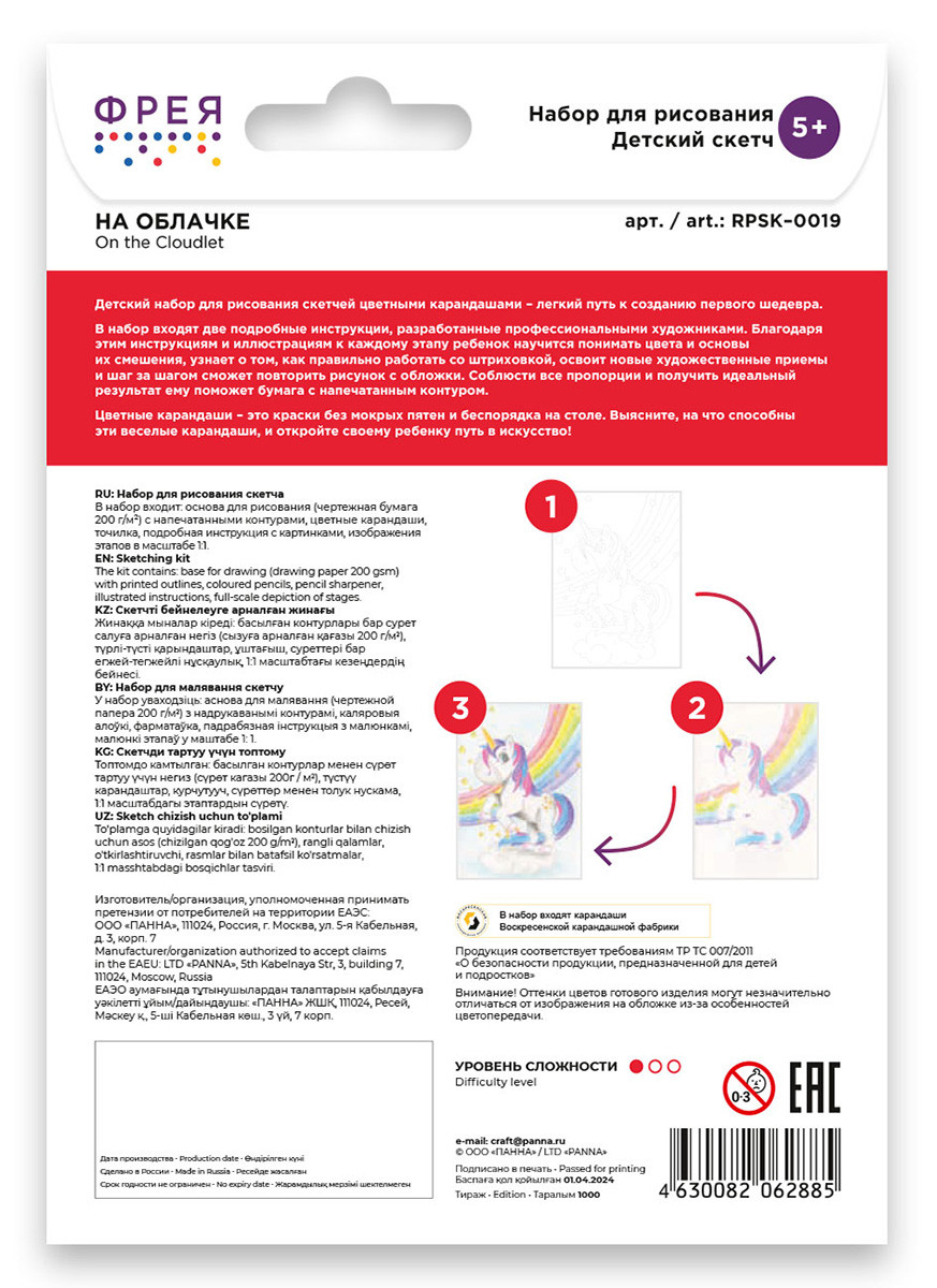 В набор входит: основа для рисования с напечатанными контурами, цветные карандаши, точилка, подробная инструкция с картинками, изображения этапов в масштабе 1: 1Размер упаковки: 164х224 мм. Детский набор для рисования скетчей цветными карандашами - лёгкий путь к созданию первого шедевра. Благодаря двум подробным инструкциям, ребенок научится понимать цвета и основы их смешения, узнает о том, как правильно работать со штриховкой, освоит много новых художественных приёмов, и шаг за шагом сможет повторить рисунок с обложки. Соблюсти все пропорции и получить идеальный результат ему поможет бумага с напечатанным контуром. Выясните, на что способны эти весёлые карандаши, и откройте своему ребёнку путь в искусство! Сообщить о неточности в описании Подборки товаров