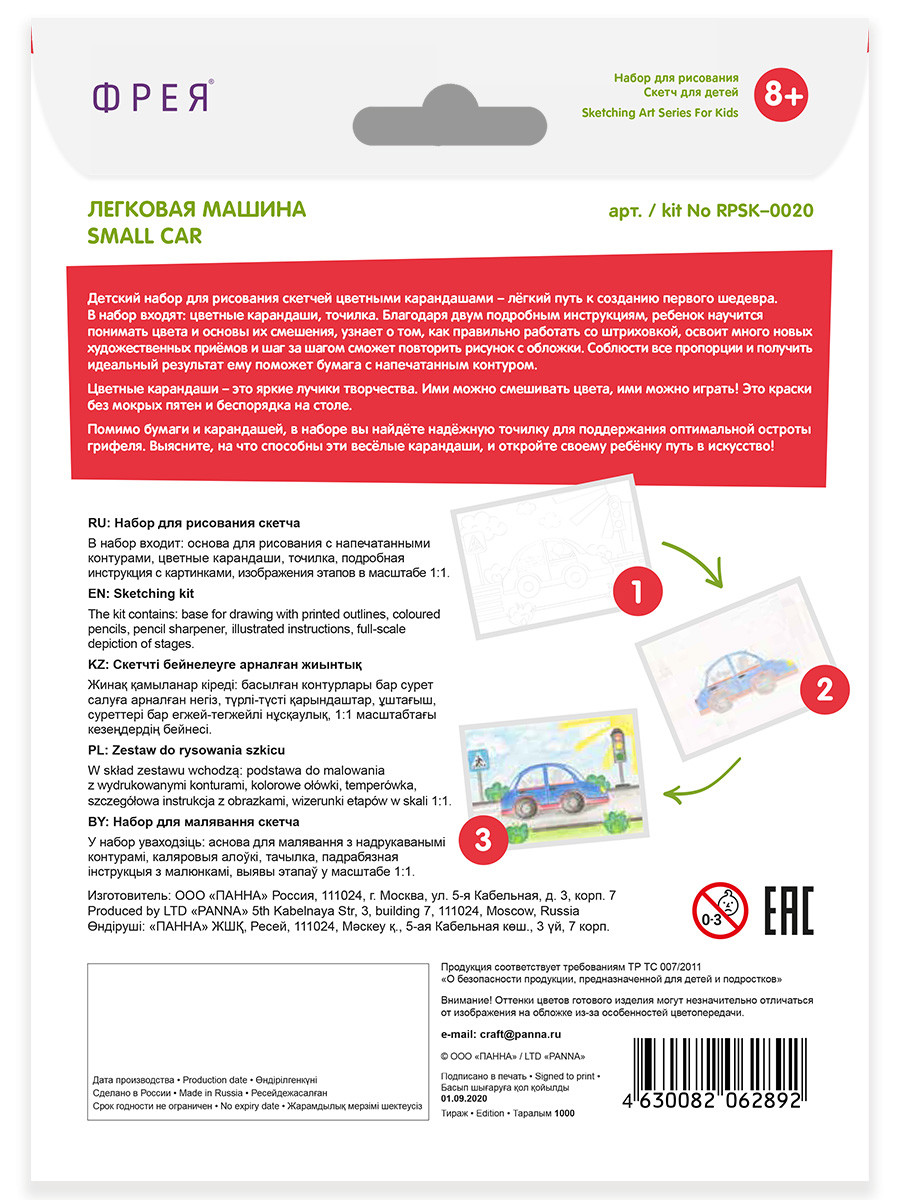 " ФРЕЯ" RPSK- 0020 " Легковая машина" Скетч для раскраш. цветными карандашами 21 х 14. 8 см 1 л. .