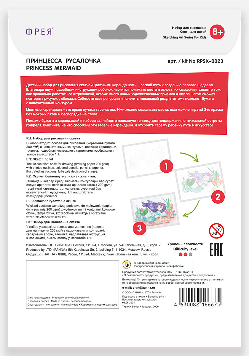 " ФРЕЯ" RPSK- 0023 " Принцесса русалочка" Скетч для раскраш. цветными карандашами 20. 5 х 14. 5 см 1 л. .