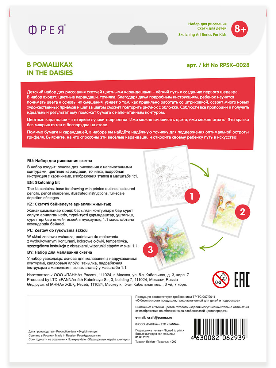 В набор входит: основа для рисования с напечатанными контурами, цветные карандаши, точилка, подробная инструкция с картинками, изображения этапов в масштабе 1: 1Размер упаковки: 164х224 мм. Детский набор для рисования скетчей цветными карандашами - лёгкий путь к созданию первого шедевра. Благодаря двум подробным инструкциям, ребенок научится понимать цвета и основы их смешения, узнает о том, как правильно работать со штриховкой, освоит много новых художественных приёмов, и шаг за шагом сможет повторить рисунок с обложки. Соблюсти все пропорции и получить идеальный результат ему поможет бумага с напечатанным контуром. Выясните, на что способны эти весёлые карандаши, и откройте своему ребёнку путь в искусство! Сообщить о неточности в описании Подборки товаров