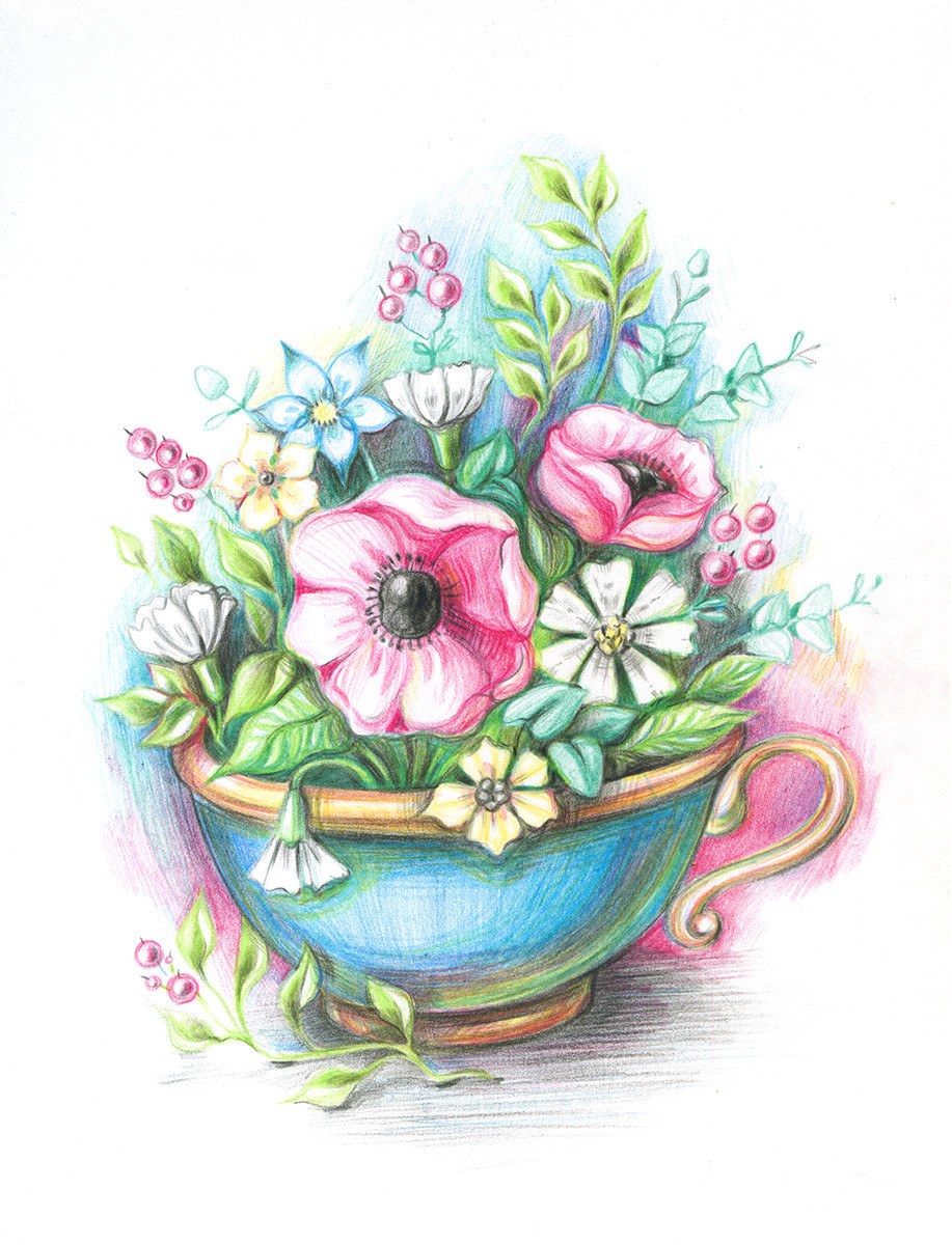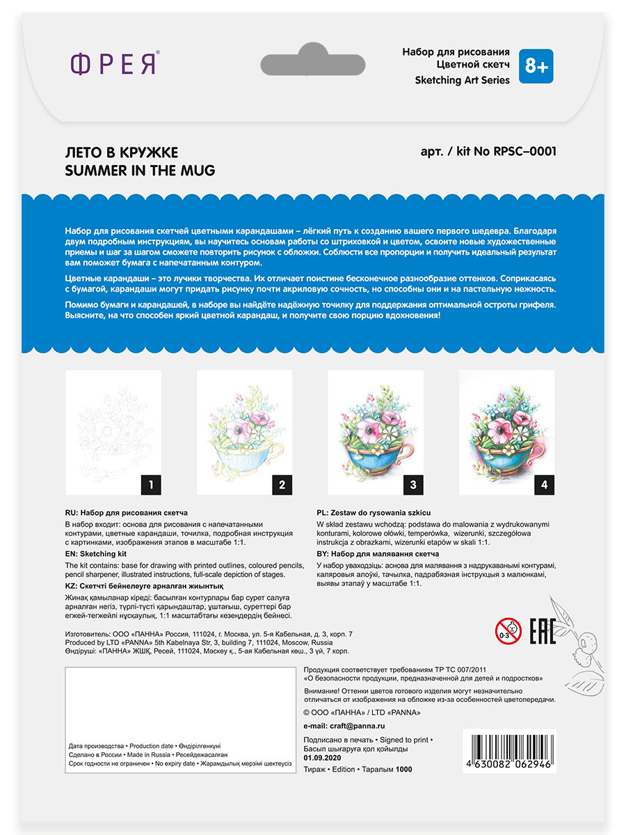 " ФРЕЯ" RPSС- 0001 " Лето в кружке" Скетч для раскраш. цветными карандашами 29. 7 х 21 см 1 л. .