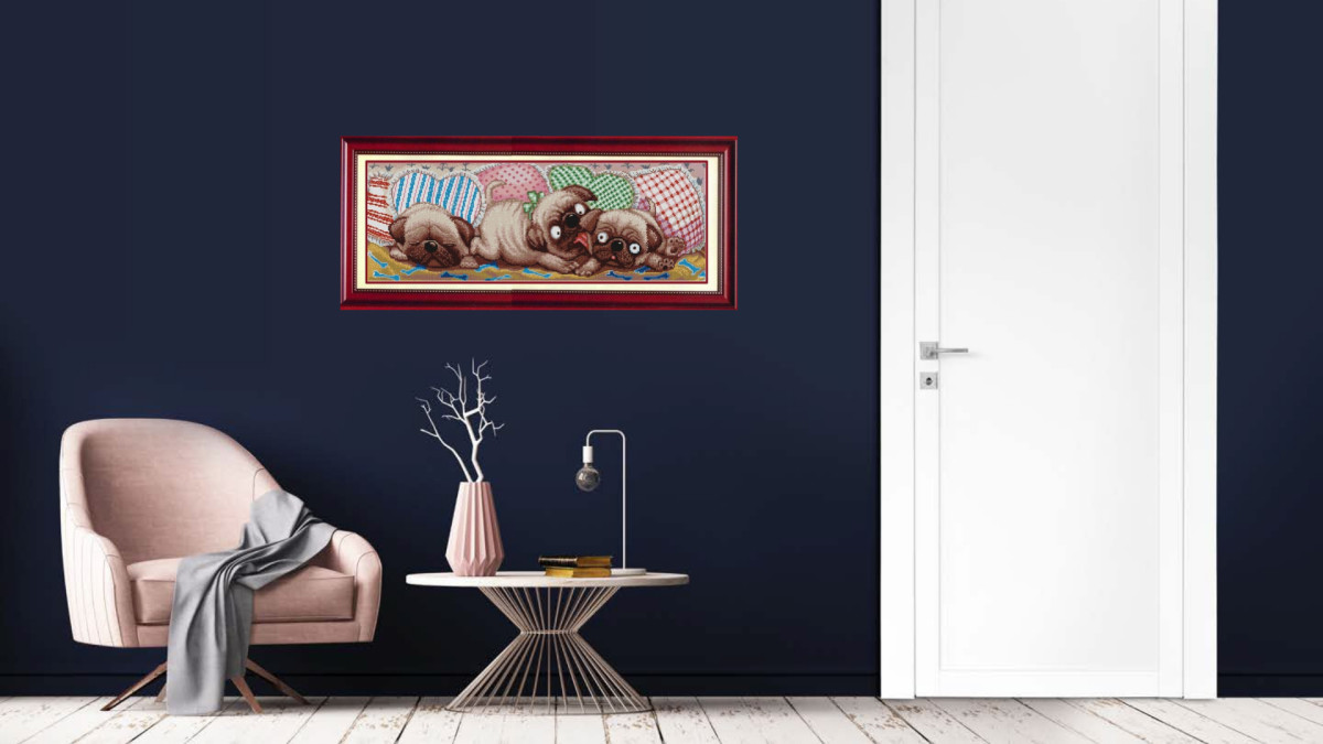 "Игривые мопсы" Рисунок на ткани