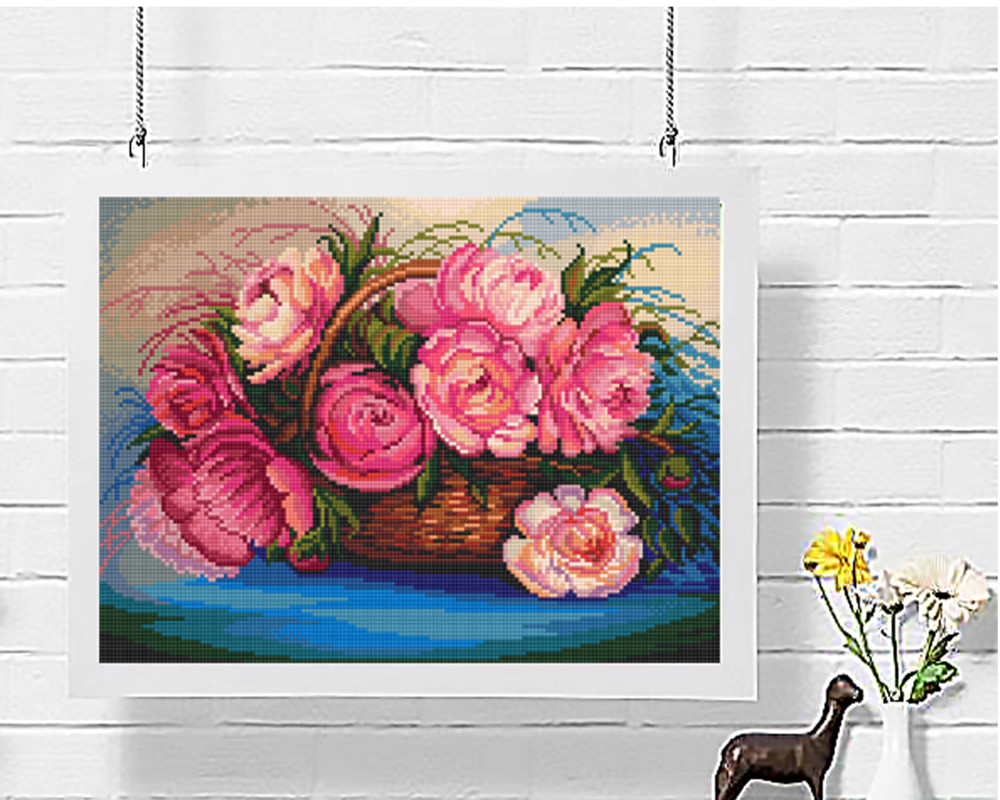 Кристальная ( алмазная) мозаика " ФРЕЯ" ALVK- 41 " Пионы в лукошке" 30 х 40 см