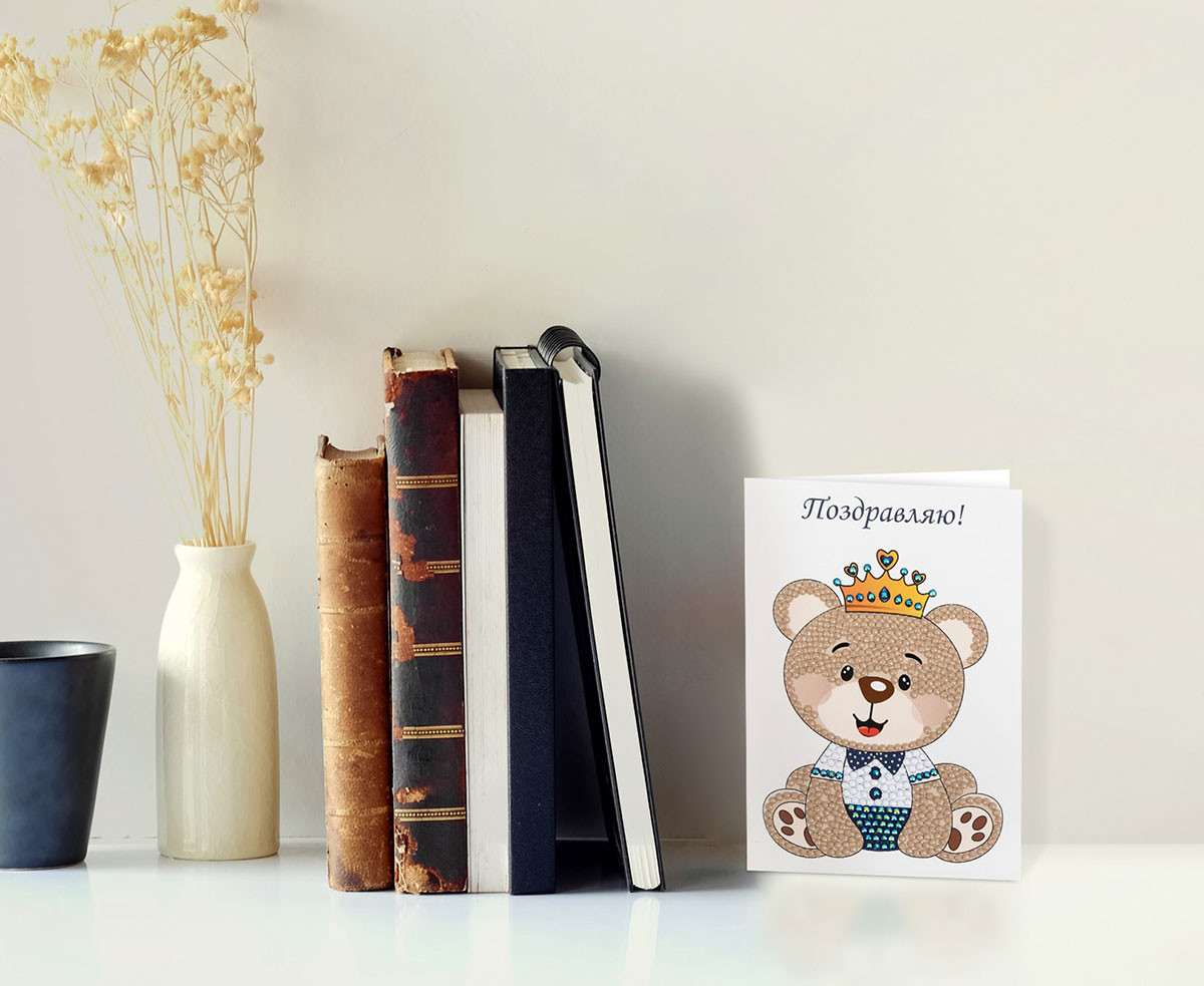 Кристальная ( алмазная) мозаика " ФРЕЯ" ALVO- 605 открытка " Милый медвежонок" 10. 5 х 14. 8 см