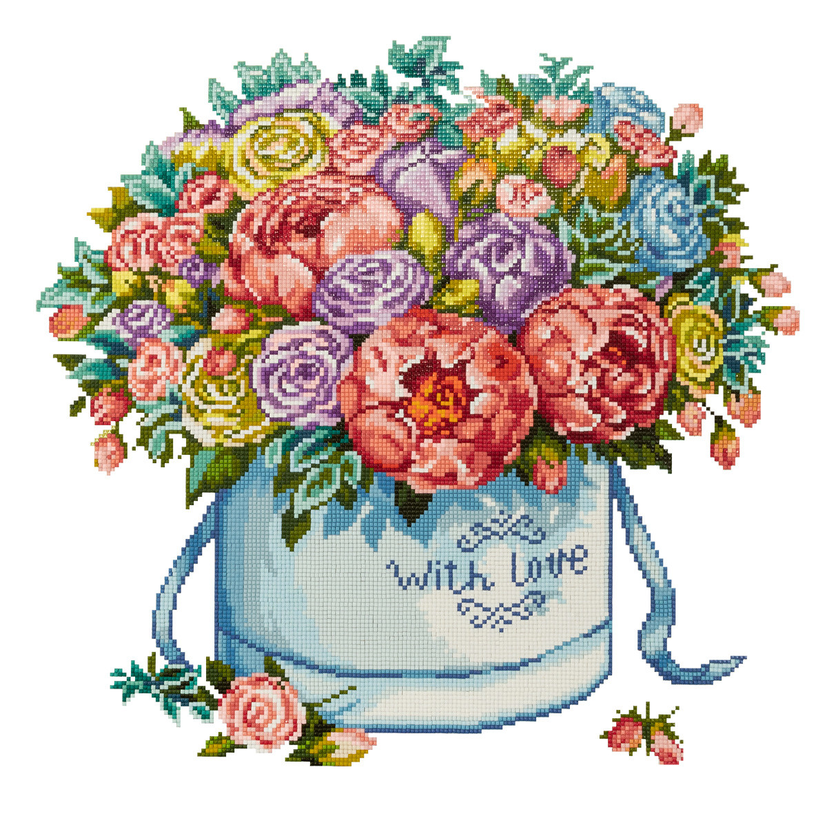 Кристальная ( алмазная) мозаика " ФРЕЯ" ALVR- 118 " Пионы в коробке" 45 х 45 см