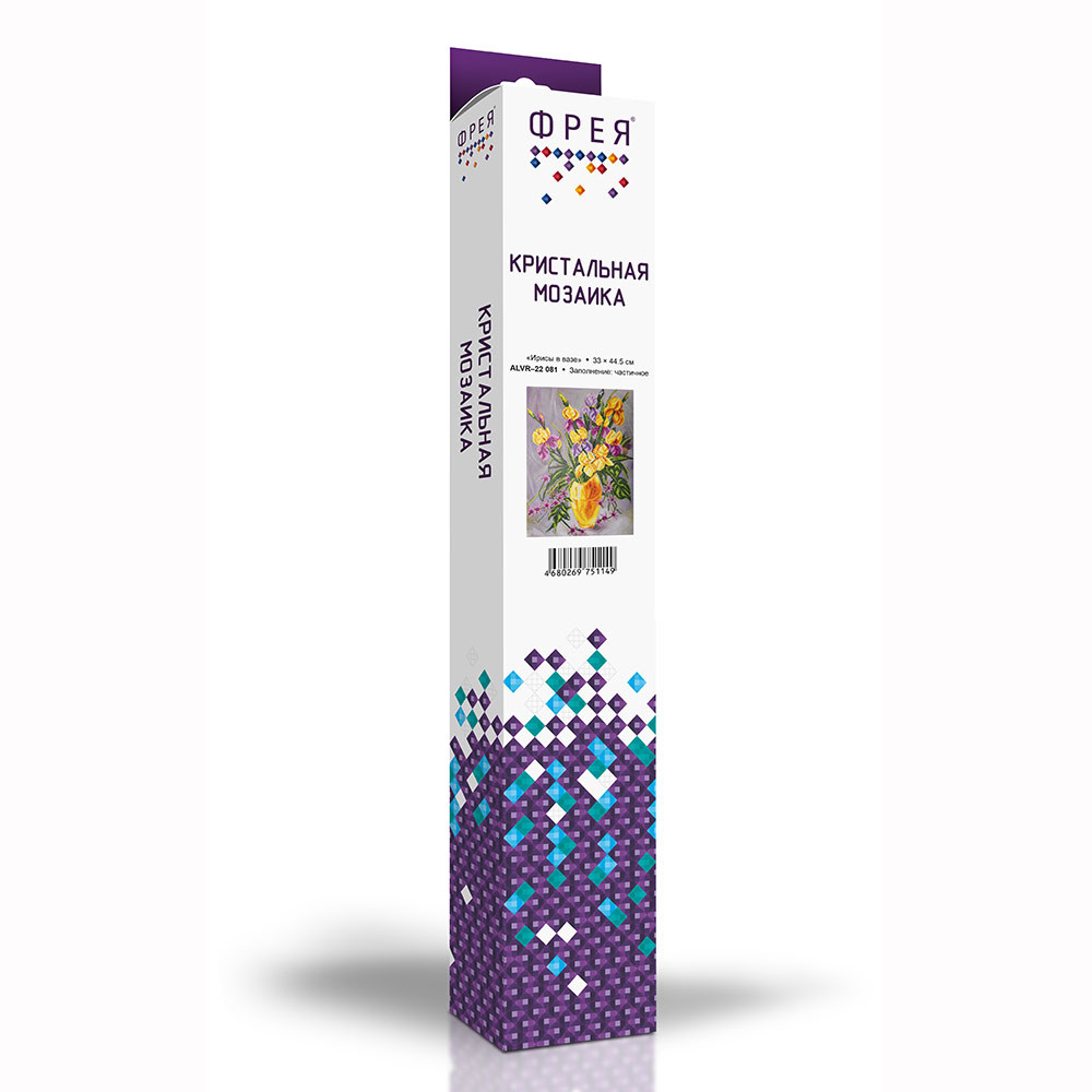 Кристальная ( алмазная) мозаика " ФРЕЯ" ALVR- 22 081 " Ирисы в вазе" 33 х 44. 5 см