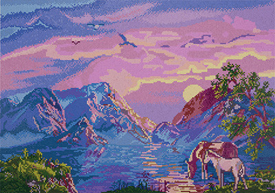 Кристальная ( алмазная) мозаика " ФРЕЯ" ALVR- 39 033 " Водопой в горах" 54 х 38 см