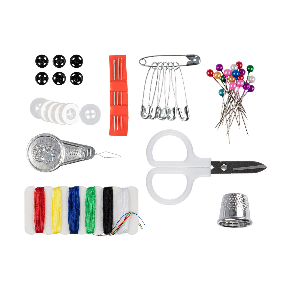 Набор для шитья CEB- 01 Gamma включает все необходимое для быстрого ремонта: нитки, иглы ручные, наперсток, мини- ножницы, булавки, нитковдеватель и прочее. Все комплектующие лежат аккуратно в компактном черном пенале, удобен для хранения. Швейный набор подойдет в качестве подарка и для путешествий. В набор входят: швейные нитки на картоне 6 цветов: белый, черный, зеленый, синий, желтый, красный, ножницы - 1 шт., иглы швейные - 3 шт., иглы для закалывания - 20 шт., английские булавки - 6 шт., кнопки пришивные - 3 пары, пуговицы - 6 шт., нитковдеватель - 1 шт., наперсток - 1 шт. Все принадлежности упакованы в пенал из полиуретана на молнии. Размер пенала: 7. 5х7. 5х2. 5 смСообщить о неточности в описании Рекомендуем посмотреть