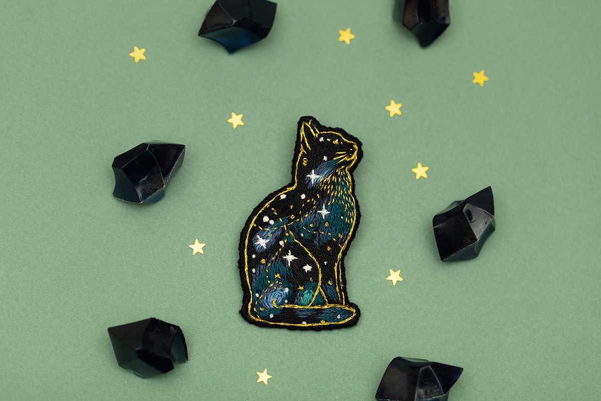 Набор для вышивания " PANNA" " Живая картина" JK- 2274 " Брошь. Космическая кошка" 3. 5 х 6 см