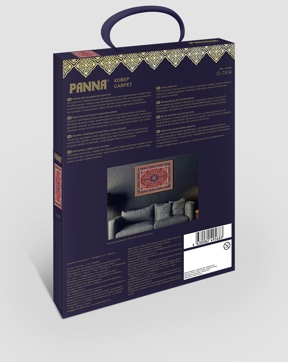 В набор для вышивания PANNA входит: канва Gamma Aida 14, х/ б нитки мулине Gamma на держателе, игла для вышивания Gamma, ч/ б схема с цветными символами, ключ и подробная инструкция по вышиванию. Создание ковров — древнейший вид искусства в странах Востока. На территории нашей страны ковер приобрел большую популярность и стал важным элементом интерьера во второй половине ХХ века. Он служил не только украшением или заменял обои, но и выполнял практические функции: сохранения тепла и шумоизоляции. Сообщить о неточности в описании Подборки товаров