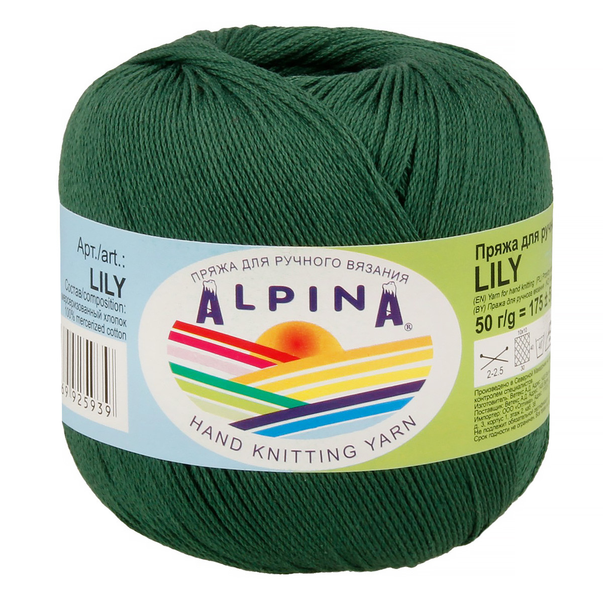Пряжа ALPINA "LILY" 100% мерсеризованный хлопок 10 * 50г 175 м №138 зеленый. Цена за упаковку 10 шт