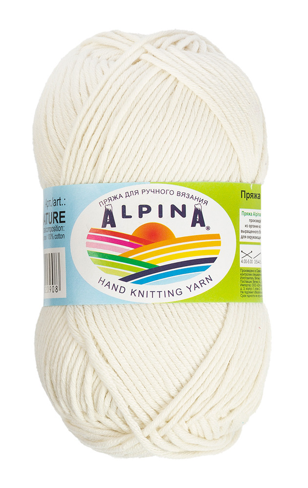 Пряжа ALPINA " NATURE" 100% хлопок 10 * 50г 105 м №001 молочный. Цена за упаковку 10 шт
