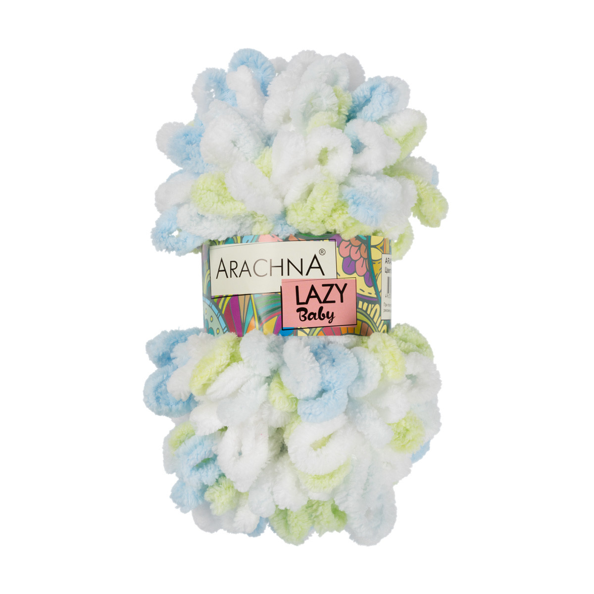 Пряжа ARACHNA "BABY LAZY" 100% микрополиэстер 5 * 100 г 8.5 м №06 белый-св.голубой-голубой-салатовый. Цена за упаковку 5 шт