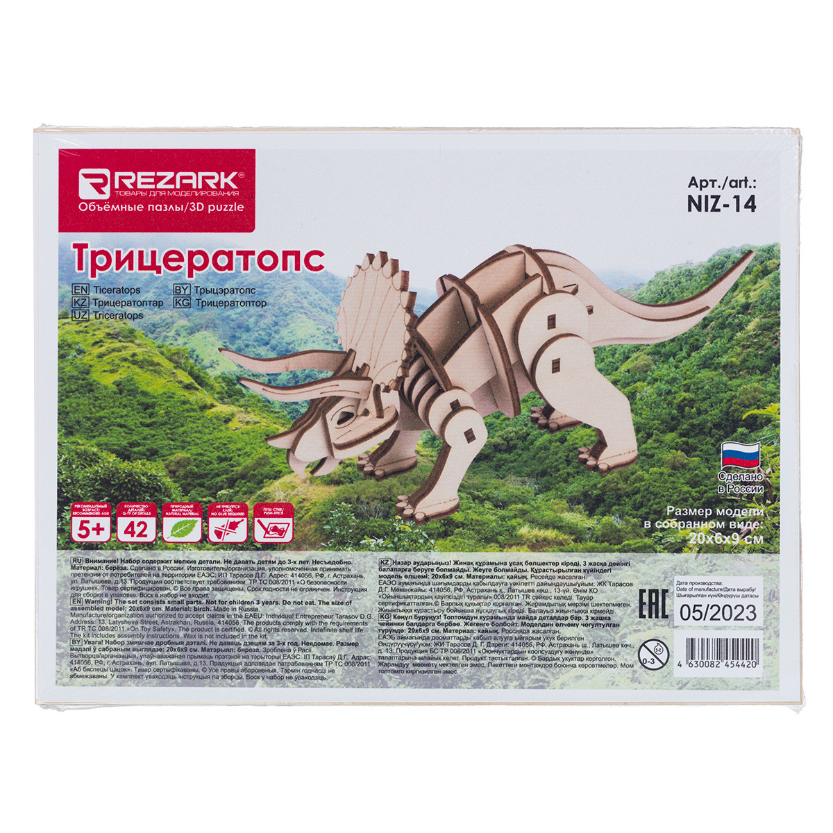 " REZARK" NIZ- 14 Серия " Живая природа" Пазл 3D 42 элемент. Трицератопс