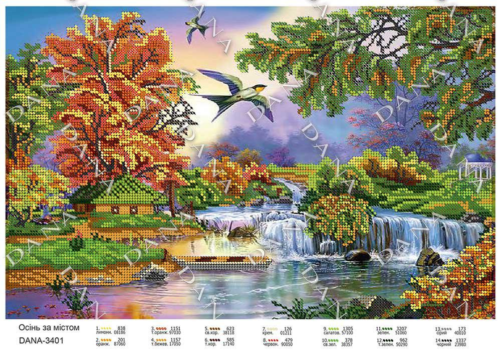 Схема- заготовка для вышивки бисером "Осень за городом", DANA-3401