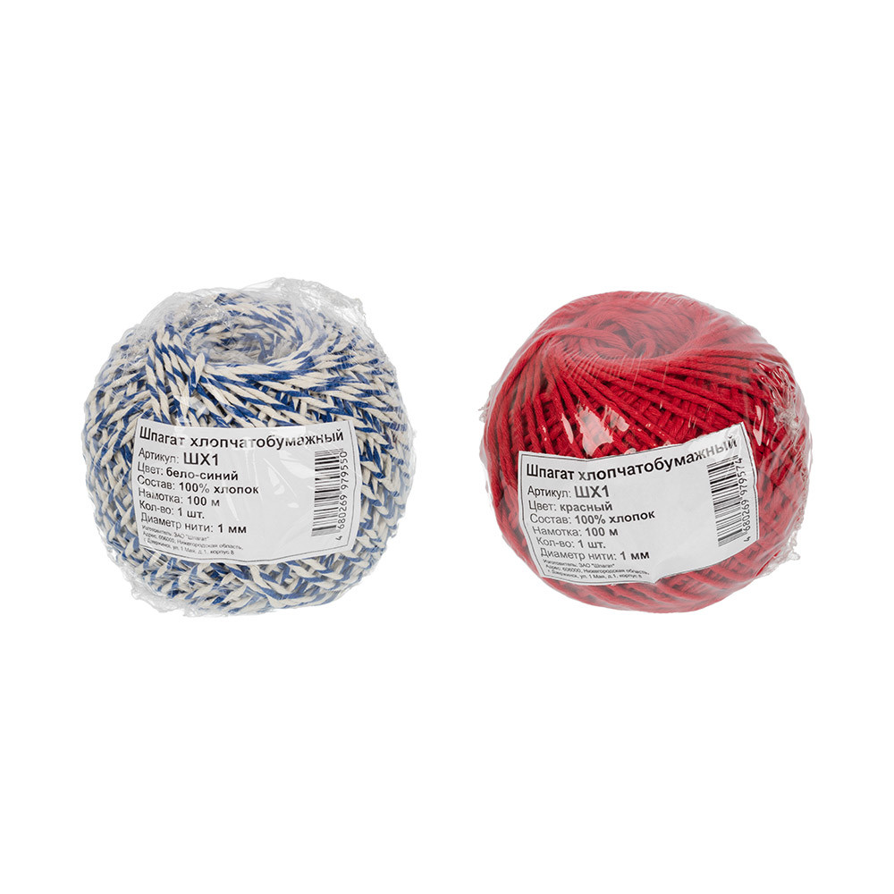 Шпагат хлопчатобумажный ШХ1 100% хлопок 1 мм 100 м 109 я белый