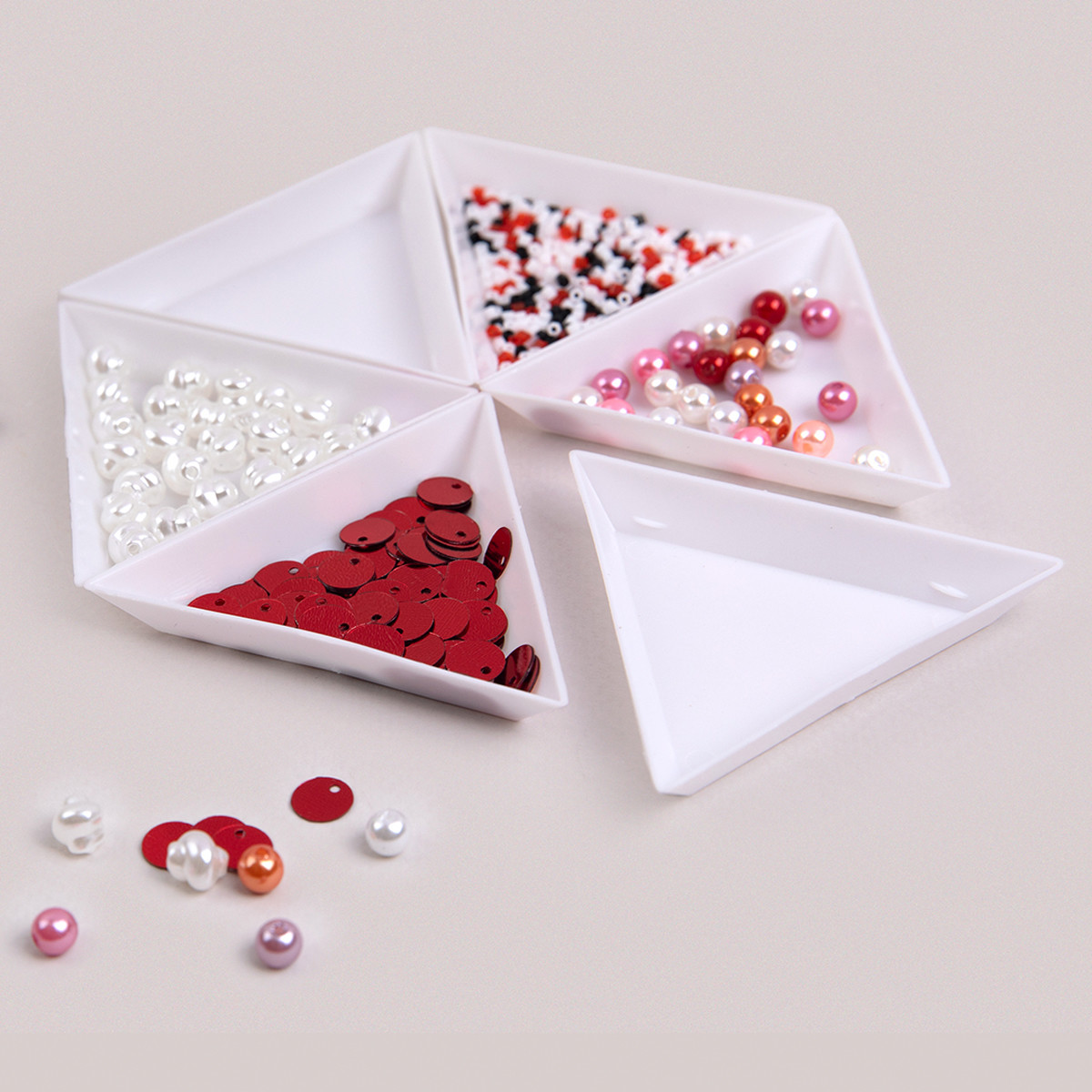 Лоток для бисера " Zlatka" TBR предназначен для хранения мелких предметов: бисера, фурнитуры для изготовления бижутерии, камней и бусин, пайеток и многого другого. Благодаря треугольной форме лотка содержимое удобно высыпать на стол или другую рабочую поверхность. Несколько треугольных лотков можно компактно расставить на столе, чтобы материалы были под рукой во время работы. Размер: 7. 4 х 7. 4 смФорма: треугольникМатериал: полипропилен 100% В упаковке: 6 штСообщить о неточности в описании С этим товаром покупают